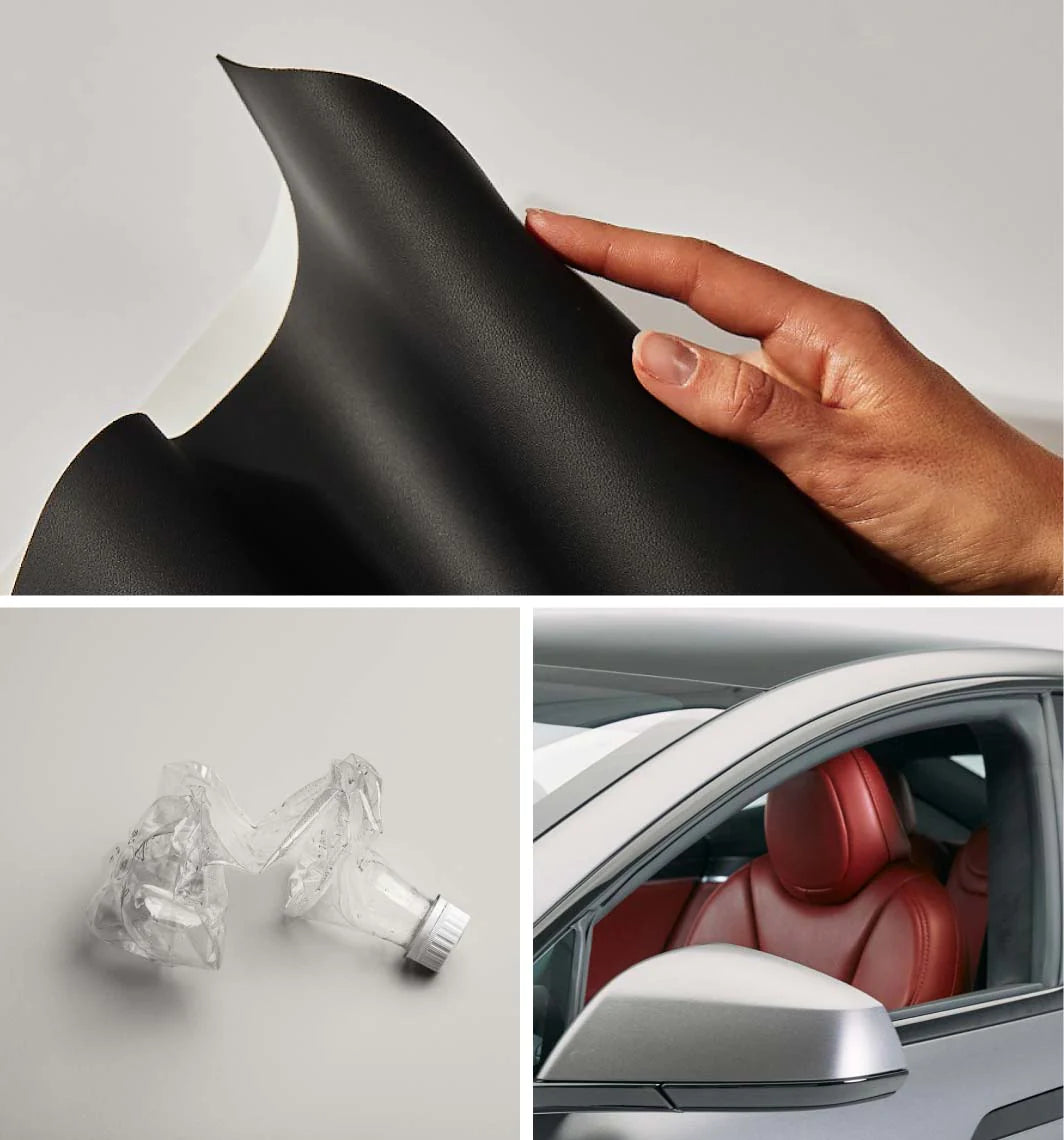 Made from plants and post-consumer plastic. Innovative, high-performing, resilient and soft, plus it has a dramatically lower carbon footprint than animal leather.