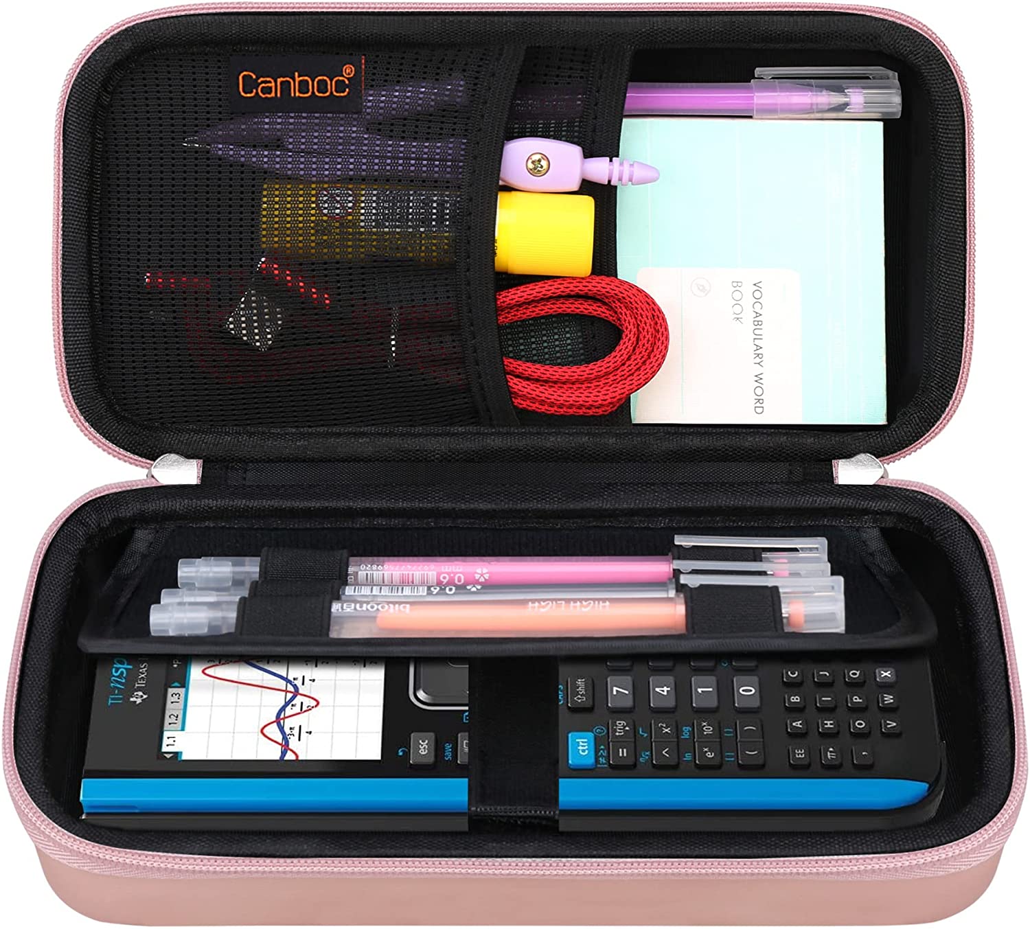 The TI-Nspire CX CAS case is characterized by a built-in separator, which can not only prevent damage caused by friction between accessories and equipment, but also store calculator accessories or school supplies, such as pens, memory card, etc. The built-in elastic band has a Velcro meant for adjusting the fit, this adjustable elastic band can hold the modern graphing calculator in place and prevent the ti-nspire cx ii cas from falling when the calculator case is opened. Canboc sturdy case can protect your calculator from the inside out.