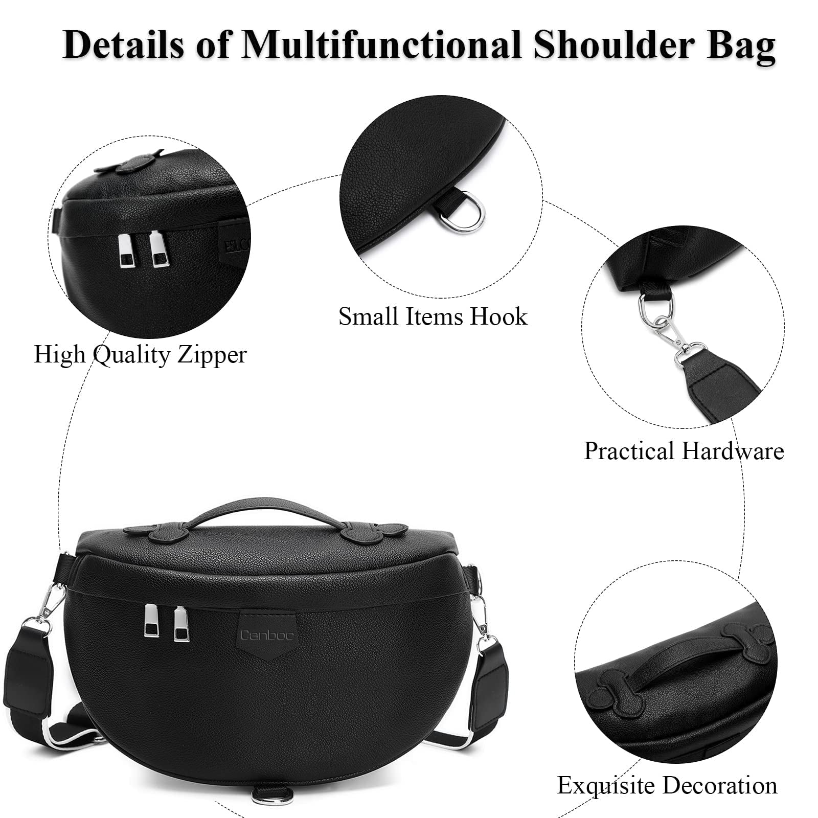 - 👜 Roomy Space Shoulder Bag: (L) 11.4x (W) 3.5 x (H) 7.7 inch. The length of the shoulder strap can be adjusted from 29.5 to 48.4in. The fanny pack for women has a built-in zippered pocket to keep things from falling out. Canboc crossbody purse can also hold some travel essentials, just as phones, lipsticks, sunglasses, wallets, passports, Airpods, keys, power banks, etc.